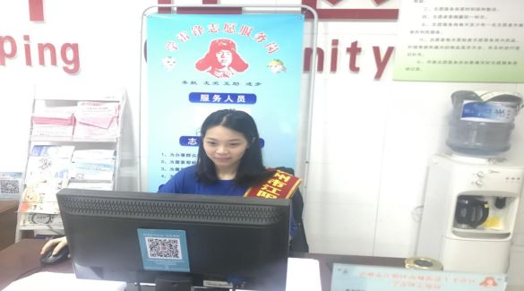 (曾琼同学在学雷锋志愿服务岗位上工作)