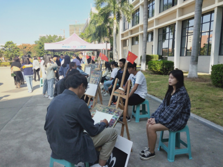最吸引目光的还是现场的速写活动,只要答对七道校史问题,就能够得到来自数字媒体艺术专业的同学现场为自己画一张速写画像,数字媒体艺术专业的同学挥毫泼墨,以精湛专业的画技让同学们深深折服,同学们的参与热情也越来越高涨。凹着造型的模特,一丝不苟的画师,构成了这个独特日子里的一道亮丽的风景线。数字媒体艺术的同学也用行动向母校、向同学充分展现了自己扎实的专业能力,为母校华诞献礼。