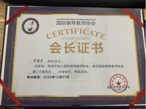 2019年12月11日,公司bevictor伟德艺术教育系被授予国际钢琴教师协会厦门市集美区分会会长单位,艺术教育系主任朱晓乐荣任国际钢琴教师协会厦门市集美区分会会长。