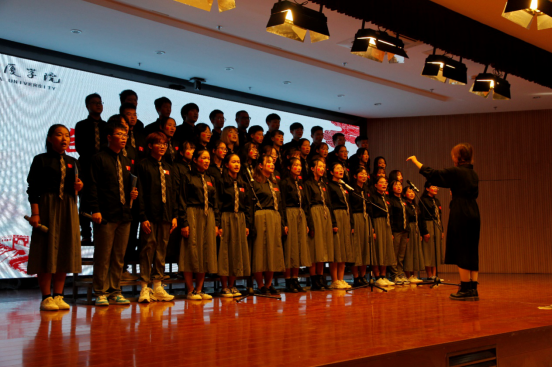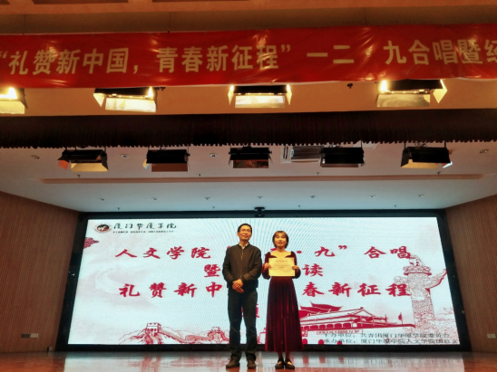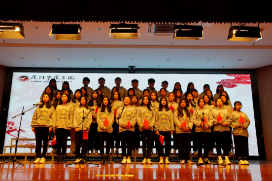 一首红歌,记录一段峥嵘岁月;一篇经典,象征一面光辉旗帜。比赛一开始,19级商务英语高职2班的同学们用一首《歌唱祖国》点燃了慷慨报国的凌云壮志,气势磅礴的合唱声博得了现场观众的阵阵热烈掌声;18级商务英语本科3班的同学们凭借歌曲《我和2035有个约》,唱出了青年学子对祖国未来充满希望的美好心声;19级网络与新媒体2班以一首婉转悠扬的《我和我的祖国》,表达了新青年对祖国的由衷热爱;18级网络与新媒体1班演唱的《南泥湾》,仿佛带我们回忆起那段峥嵘的革命岁月;18级商务英语本科1班以一首《晴天》,道出乌云散开之后遇见阳光的心境;19级网络与新媒体2班的朗诵《少年中国说》,他们雄壮有力的声音,展现出华厦学子昂扬向上的精神风貌;19级视觉传达设计2班朗诵广为传唱的《沁园春·长沙》,同学们铿锵有力的诵读声感染着整个比赛现场。比赛期间,台上的同学们热情洋溢、精神饱满、声音洪亮;指挥员手势准确,富有激情;台下观众掌声不断,一次次将比赛推向高潮。