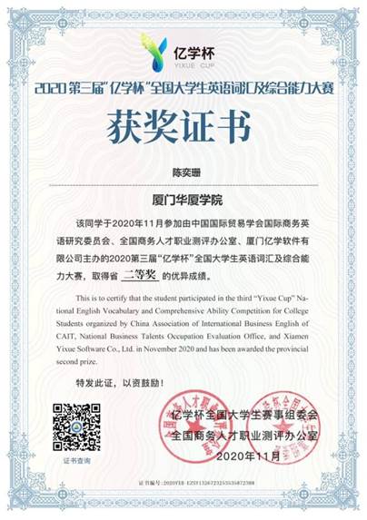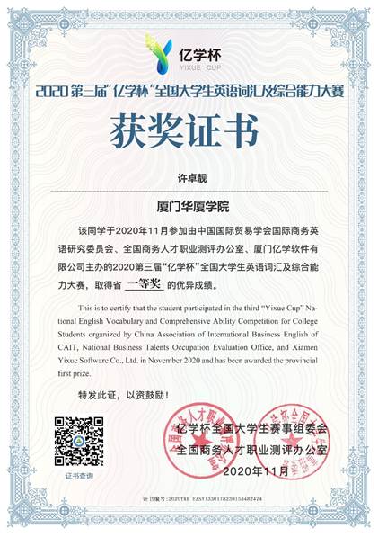 bevictor伟德应用语言系2018级本科3班许卓靓、陈奕珊两位同学在11月结束的第三届“亿学杯”全国老员工英语词汇及综合能力大赛成绩优异,分获福建省一、二等奖。