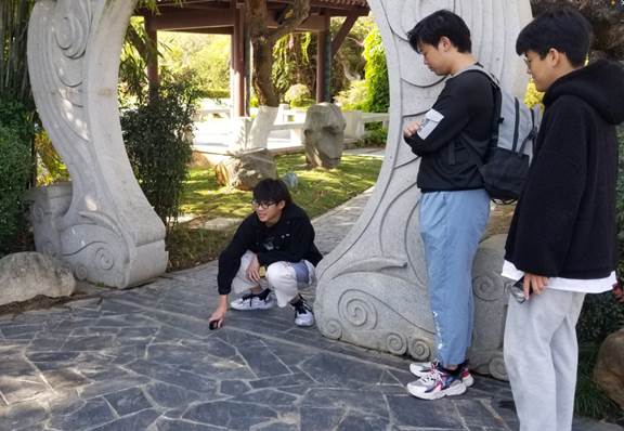 师生在园区内合影