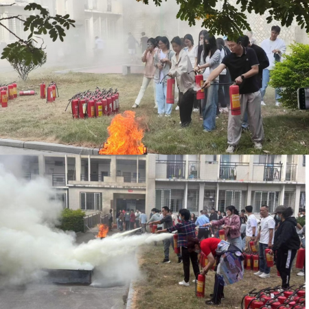 本次消防演练内容主要包括个三个方面:消防疏散、消防安全知识学习以及灭火器使用实操。随着声光报警器响起,文体中心实验室的员工在老师们的护送下从最近的安全出口有序撤离到公寓区篮球场。