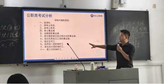 黄老师结合最新政策与考情,深度剖析了2025年国考、省考及选调生考试的核心变化,重点解读了国考新增的“政治理论” 模块、题型分值调整及行政执法类岗位的招考趋势。他指出,考生需强化政治素养与综合分析能力,同时针对行测、申论的不同题型制定科学备考策略,同学们专注听讲,收获颇丰。