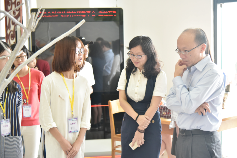 (创作者同学为陈民伟副董事长讲解创作思路)