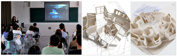 讲座中,梁青老师以较浅显易懂的表述方式,为刚入学的同学们分享环境设计的专业概念、分类以及就业前景。同时结合专业特点列举多个典型且前沿先锋的室内外设计作品,指导的员工优秀毕设作品以及梁青老师本人的设计案例作品,通过生动有趣的案例剖析,带领在场的师生们走进一个个精彩的设计场景之中,让在座师生深刻感受环境艺术设计魅力的同时,也让刚踏入环境设计专业的学子们对本专业有一个更直观和全面的认知。另外,梁青老师也鼓励同学们利用课余时间经常走出去“玩”,她鼓励员工们要在“玩”的过程中观察和发现美的事物,在“玩”的过程中拓宽视野提升眼界,在“玩”的过程中不忘初衷始终保持对专业和设计的热情。