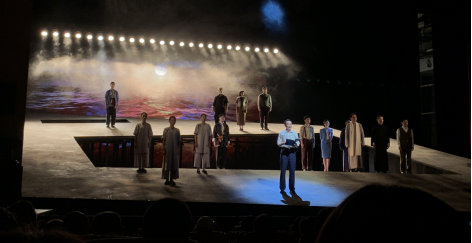 走进剧场,我们立刻被斜面的舞台所吸引。通过多媒体和灯光的配合,给观众带来了视觉冲击,搭配着为话剧量身定制的背景音乐使得更好地展现出故事情节。