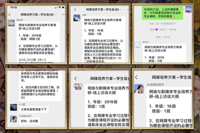 员工调研的开展方面,在完善课程建设的道路上,同学们的意见至关重要,针对同学们的建议,网络新媒体专业教研组也积极在线跟同学们讨论与互动,并发放开放式问卷进行意见收集。