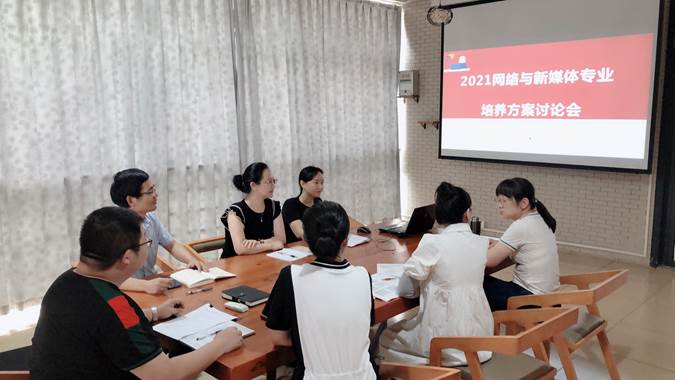 教研室组织研讨会方面,7月20日教研室组织开展专业培养方案研讨会,老师们在会上进行最新版培养方案的研究和讨论,并由公司党总支书记刘昌俊老师指导专业思政建设。会上对了新闻传播类教学质量国家标准及专业介绍的最新内容做了详细解读,对五所相关院校的网络新媒体专业培养方案进行分析,制定网络与新媒体专业教学计划进度表,编写2021版人才培养方案修订调研报告,同时针对员工们对专业课程的调研结果开展培养方案的课程调整计划。