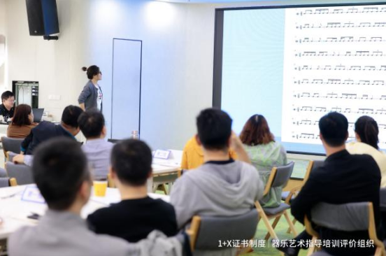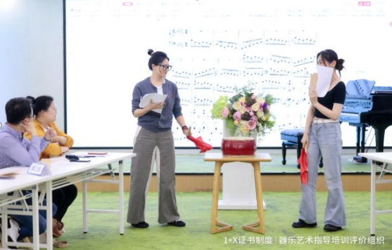 在为期五天的培训中,培训内容涉及对“1+X”器乐艺术指导公司产品理念、职业素质提升、教育知识运用等理论知识要点的梳理;器乐艺术指导教学规划、教材搭配、教学流程、教案设计与书写以及演奏技能训练、教学法创新等实操方面进行了五项核心技能的考试。