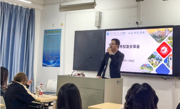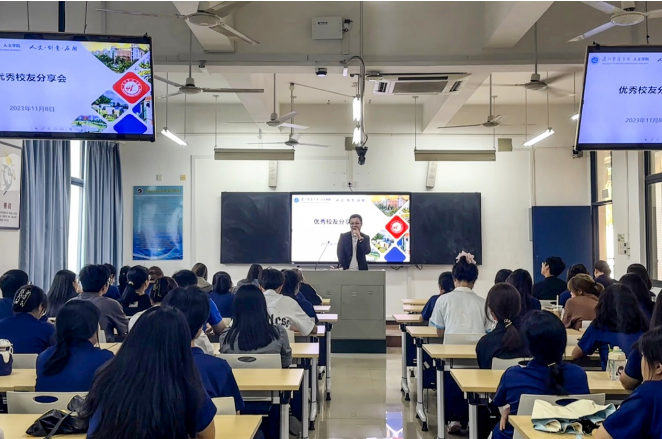 2023年11月8日下午,正值伟德国际体育官网三十周年华诞之际,bevictor伟德在致远楼201教室召开bevictor伟德优秀员工分享会。本次分享会共邀请06级商英汪艺杰学长和15级数媒彭伟学长两名优秀员工为华厦师生分享经验。