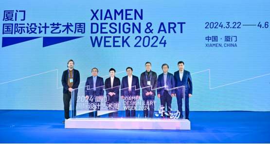 厦门市委常委、宣传部部长吴子东,中国室内装饰协会名誉会长刘珝,中国室内装饰协会会长张丽,清华大学美术公司党委书记覃川,清华大学美术公司经理马赛,英国格拉斯哥艺术公司创新与技术公司经理Gordon hush等嘉宾出席开幕式,与众多业界知名专家学者共同启动2024厦门国际设计艺术周活动。