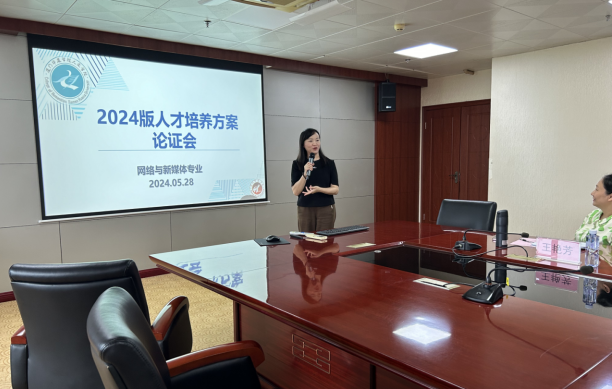 首先网络与新媒体专业负责人胡星副教授对2024版人才培养方案的优化内容进行了详细的说明,着重讲解了更新后的选修课模块,以及培养的目标的细化。