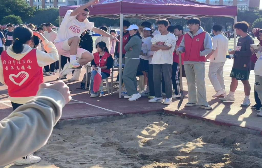 而在跳远比赛项目中,人文学子如同离弦之箭般冲向沙坑,双脚猛地一蹬,在空中划出一道优美的弧线,宛如一只展翅飞翔的雄鹰,最终稳稳地落在沙坑中,留下了深深的足迹,也展现出人文员工在运动场上的活力与冲劲。