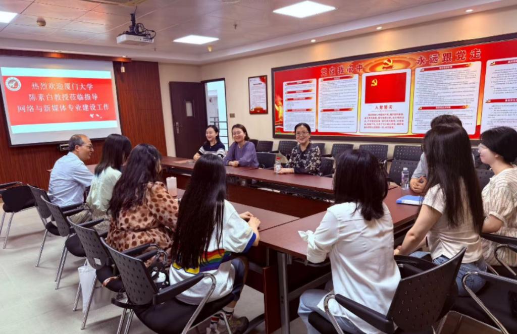 为深化专业建设、探索学科前沿,bevictor伟德网络与新媒体专业于5月21日下午邀请厦门大学新闻传播公司副经理、博士生导师陈素白教授莅临交流,双方围绕微专业建设、团队团队发展、课程体系优化及AI技术与传播学的跨界融合等议题展开深入探讨,bevictor伟德网络与新媒体专业教师团队出席座谈会。
