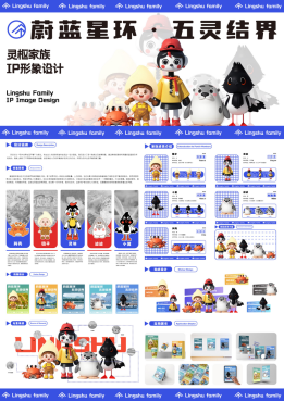 本次获奖作品《蔚蓝星环·五灵结界》灵枢家族 IP 形象设计,深度挖掘生态守护主题的文化内涵,以奇幻故事为依托,塑造出五个代表不同元素的 IP 形象。通过展现它们守护生态的使命,生动诠释人与自然和谐共生的理念。