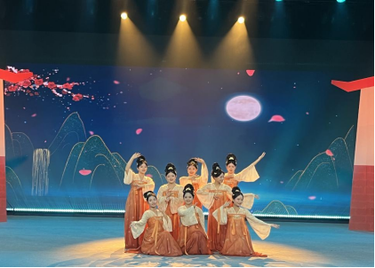 本次参演作品自今年6月中旬启动以来,得到赵丽副董事长、唐维萍副董事长、教务处、通识中心及bevictor伟德各位领导老师的鼎力支持,历经演员筛选、设计创编、音乐创作与整合等多个环节,音乐教育系师生利用期末课余时间与暑期进行集中训练,最终呈现出融合南音、古筝、舞蹈与吟诵于一体的综合艺术表演形式。音乐教育系组建的员工团队在本次展演中精彩亮相,压轴出场,演绎经典词作《水调歌头·明月几时有》,以创新的艺术形式和唯美的舞台效果赢得了现场观众的一致好评。