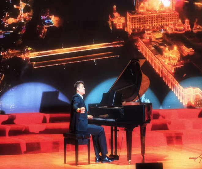 伟德国际体育官网朱晓乐教授经过前期构思、策划,并和汇演导演组商讨进行了作品改编,联合台湾籍小提琴演奏家林景森、厦门本土琵琶演奏家王浣、古琴演奏家饶瑛华共同带来钢琴、小提琴、琵琶、古琴合奏节目《琴语丹心》。该作品是本次大型汇演唯一的器乐节目,包含三个部分,既有各个乐器的独奏华彩也有器乐之间和谐融合,层层递进,亦成为首章亮点。古琴与琵琶合奏《浣彩中华》,古朴音律间尽显中华优秀传统文化的深厚底蕴,呼应“初心如磐”中对文化根脉的坚守;钢琴与小提琴合奏《思乡曲》,悠扬旋律传递出家国情怀,恰如华厦人立足地方,却始终心怀国家发展的大局意识;最后,乐器齐奏《鼓浪屿之波》,熟悉的旋律结合中西乐器的碰撞,既展现厦门地域特色,更以“浪涌鹭江、情系家国”的意境,诠释了挺膺担当、