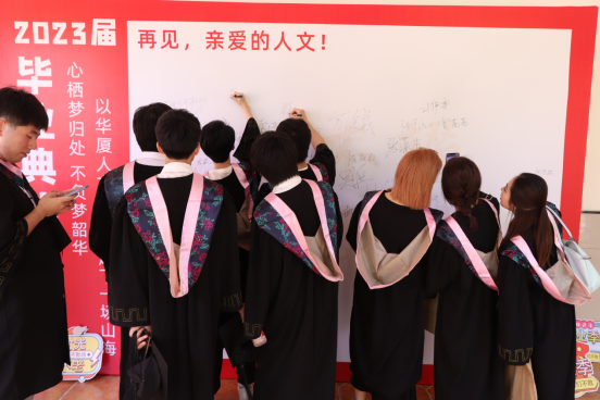 在典礼开启之前,bevictor伟德毕业生们在签名墙上写上自己的名字,打卡属于自己的青春名片。