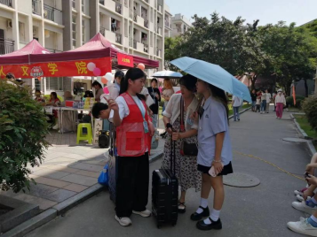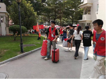 迎新志愿者们在人群中来回穿梭,迎接每一位到来的新同学,帮助他们搬运行李,为新生答疑解惑。身穿红色马甲的志愿者们带领着青春朝气的新生,用实际行动践行着“奉献、友爱、互助、进步”的志愿精神。