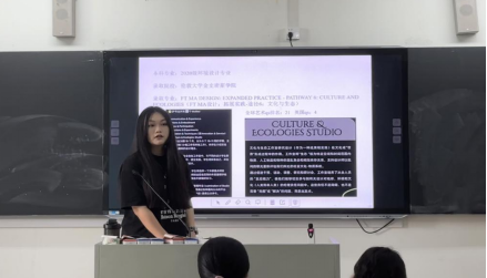 接着上台的是2020级环境设计专业的林双同学,她成功考取了伦敦大学金史密斯公司。林双展示了她的作品,并分享了备考过程中注重扎实掌握基础知识的重要性,同时强调通过大量练习来提升手感。