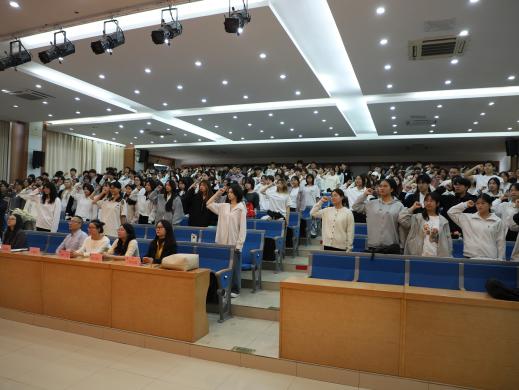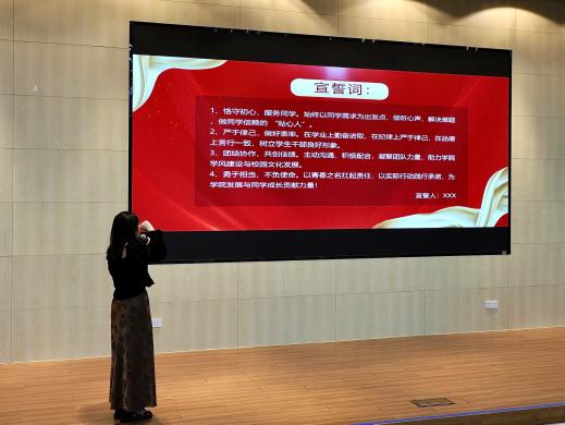 仪式最后,在吴维闽老师的带领下,全体员工干部肃立举拳,庄严宣誓。誓词聚焦“恪守初心服务同学、严于律己做好表率、团结协作共创佳绩、勇于担当不负使命”四大核心,进一步筑牢了大家的责任意识与服务精神。