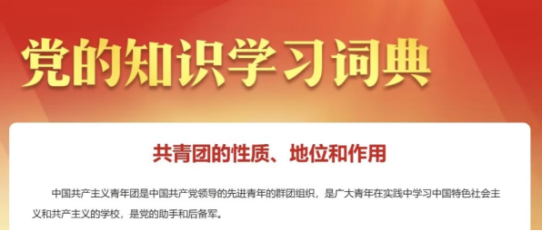 中国共产主义青年团是中国共产党领导的先进青年的群团组织,是广大青年在实践中学习中国特色社会主义和共产主义的公司,是党的助手和后备军。