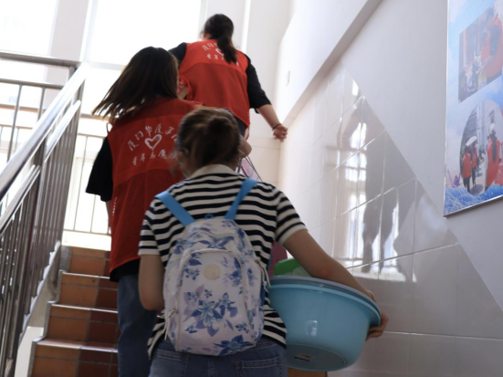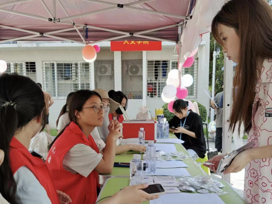 在指引新生前往宿舍区的过程中,面对新生的各种咨询,志愿者们积极答疑解惑,分享自己在老员工活中的经验,向新生展示人文学子助人为乐的精神风貌。同时带领着新生前往相对应的楼栋报道点,办理相关的入学手续。