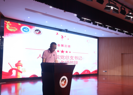 随后,党总支书记王德华老师上台致辞。王德华老师为学员解读了关于青年马克思主义,特别强调要将理论与实践结合。他对参加此次“青马工程”的学员给予肯定,希望学员再接再厉。