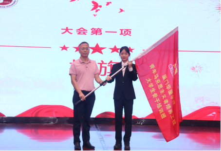 第一期“青马工程”培训班开班仪式正式开始。首先,由党总支书记王德华老师向员工代表授旗。