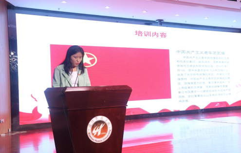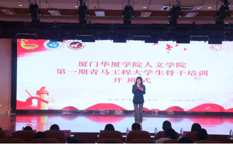 最后,团总支书记吴维闽老师上台讲话,她从理论学习、技能提升、实践锻炼三个方面向学员介绍培训内容,并且对学员提出了培训要求以及注意事项。号召大家积极投身实践,通过切身体会来加深了对“青马工程”培训的认识和理解。