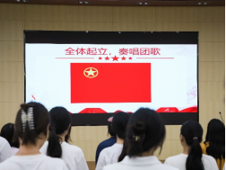 第七环节,全场奏响《中国共产主义青年团歌》,新团员们跟着旋律放声歌唱,歌声中充满了青春的朝气与力量。