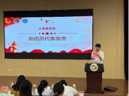 第五环节,新团员代表上台发言。他讲述了团员使命,并代表全体新团员承诺:“今后会以团章为行动指南,勤奋学习、乐于助人,用实际行动诠释团员的担当,树立远大理想;也要脚踏实地,做好身边小事”。