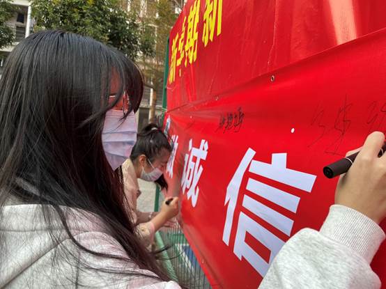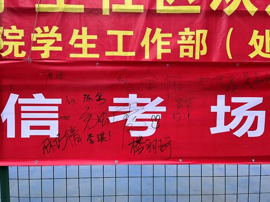 活动现场中,标语鲜艳、人头攒动,全校众多员工纷纷在“做诚信员工 建诚信考场”的条幅上郑重地签上了自己的名字,一个个姓名的呈现,都让人感到无比的欣慰和自豪,广大同学都用自己的行动来诉说对我们严肃考风考纪签名活动的认可和支持以及对严肃考风考纪态度的端正,更是对自己心灵的考验。