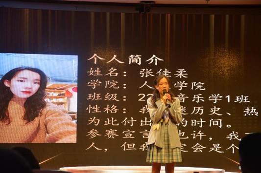 本次初赛共两个环节,第一环节是参赛选手们的自我介绍及个人才艺表演,第二环节是主持情景模拟。参赛选手们轮番上台,各显神通、妙语连珠,进行了各具特色的精彩介绍及才艺表演,创造一个个语言奇境,更是高涨迭起。陈思琪同学用开朗的表演形式且富有磁性的嗓音,落落大方的她给大家留下了深刻的印象;章婉婷同学用甜美的声音、动情的朗诵赢得了现场观众的阵阵掌声。参赛选手们别出心裁的准备、真实有力的表达,感染了现场的评委与观众,同时也恰如其分地展示了校园主持人的风采。