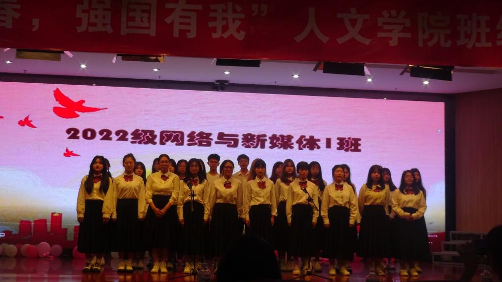 2022级网络与新媒体2班的《舞动青春》让我们感受到青春是那样的美好。2022级数字媒体艺术1班的合唱《我和我的祖国》让我们透过历史的眼眸,在岁月的肩膀上远眺;肩负沉甸甸的嘱托,憧憬美好的未来。