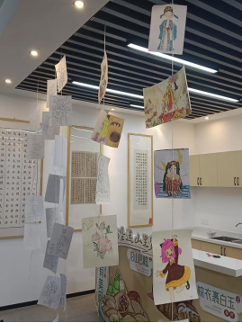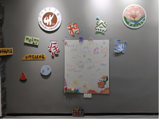 “光影对话,聚集艺术之美”的员工画展是由支教团的两位美术老师对这段时间的员工美术教学成果的总结,以孩童的视角表达创意、自然和童趣。