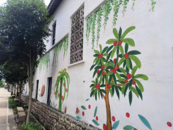 支教团成员们在村里随处可见画着主要产业的文化墙