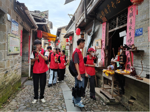 支教团成员们走在古道上,欣赏传统雕刻,品尝非遗豆腐,感悟着千年古镇带来的魅力。