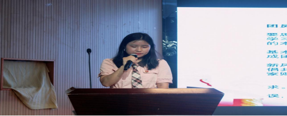 接着,由新团员代表2022级商务英语翁惠萍同学发言,内容包括团员必忠诚于誓言,以实际行动来证明自己,起到先锋模范作用,全心全意为人民服务。