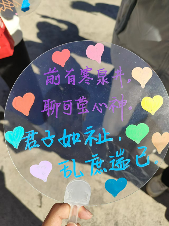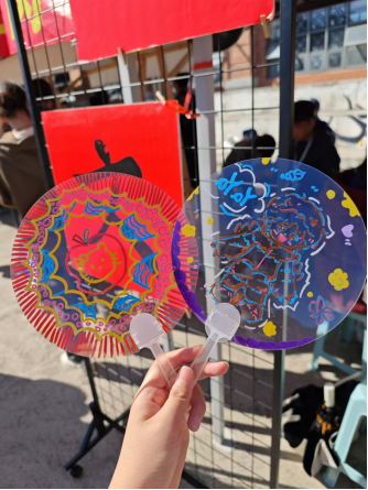 “扇舞指尖创意坊”;首先引入眼帘的是diy活动同学们根据自己的创意构思,开始动手制作扇子。选择合适的扇面和扇骨进行组装,然后运用颜料、彩笔等工具在扇面上绘制图案,用胶水粘贴装饰材料,将自己的创意逐步变为现实。扇子本身就是一种艺术品,其优美的造型、精美的图案和丰富的装饰元素都蕴含着独特的艺术魅力。在制作过程中,同学们相互交流、分享创意和经验,互相帮助、协作完成作品。