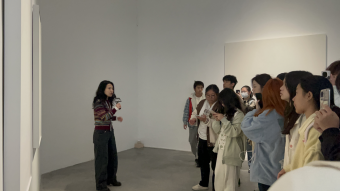 第四站,艺术鉴赏——红顶艺术中心田衛的“仿痕”个展,以"持身正大”、“闲饮东窻”、“潜山入市”三个篇章,展出近五十幅“书象”作品。融合历代名家书法、摩崖石刻、碑文、丹青与闽南文化,以独特的绘画性书法和当代美学语汇,将传统与现代紧密结合,策展人梁爽以“聚沙成塔”形容其创作,有着独特的艺术氛围。一踏入,便能看到别具一格的建筑造型与独特艺术展示作品分布在各个角落,感受艺术在此的呈现与交融,领略艺术家的巧思与艺术追求,给同学们提供了一次开阔眼界、提升艺术素养的好机会。
