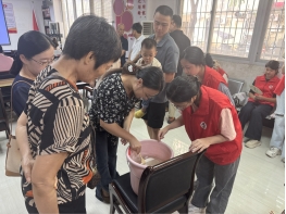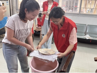 活动伊始,村中老党员、年轻党员与同学们结对而坐。同学们首先分享了对大漆工艺文化内涵的理解,阐释其中所蕴含的团结精神与坚韧品格。随后,大家共同投入漆扇的制作环节——同学们思维活跃,大胆尝试色彩的搭配与滴染;党员同志们则沉稳示范,悉心传授调色技巧与力道把控。最动人的莫过于“转印”时刻:一双双年轻的手与布满岁月痕迹的手协同配合,将素白扇面稳稳浸入流动的彩液之中。当一把把独一无二的漆扇被轻轻提起,呈现出绚丽万千的纹样时,成功的喜悦洋溢在每个人的脸上。这一刻,非遗技艺在指尖传递,奋斗精神在心间共鸣。