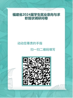 调研对象:福建省各高校2024届专科、本科、硕士和博士毕业生,调查方式:调查采用在线电子文件形式进行答题。请各高校将毕业生答题链接或二维码推送给本校2024届员工。