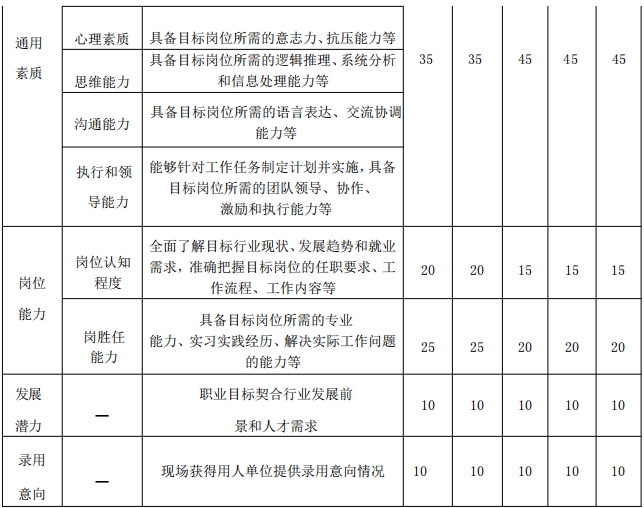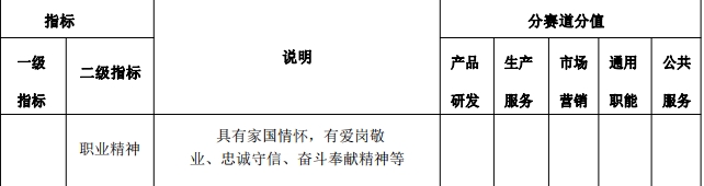 作品主要考察其求职实战能力,个人发展路径与经济社会发展需要的适应度,就业能力与职业目标和岗位要求的契合度。其中,针对企业职能岗位,设产品研发、生产服务、市场营销、通用职能类;针对公共服务岗位,设公共服务类。
