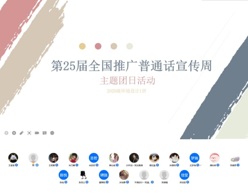 (2020级环境设计1班“推广普通话”团日活动留影及心得)