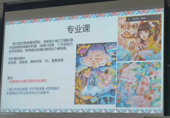 陈玺宇学姐以考研现状为切入点,分别向同学们介绍了备考流程和学习要点,并根据其学习经历向同学们推荐了教材。最后,她以“勇敢的人不是不落泪,而是含着泪水继续奔跑的人”为结束语,勉励同学们不断努力,能定义自己的只有自己。