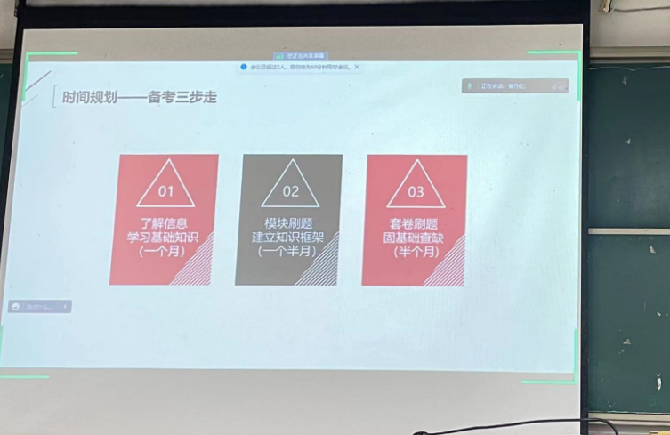 徐云浩学长首先向我们分享了他的备考经历以及备考中遇到的问题;随后进行了学习经验分享,包括阶段规划和心态调整等内容;最后,他强调了科学规划、勇气、朋友老师的帮助在备考过程中的重要性。徐云浩学长的分享让同学们对考研有了更深入的认识,为未来的备考和学习方向提供了重要的参考。