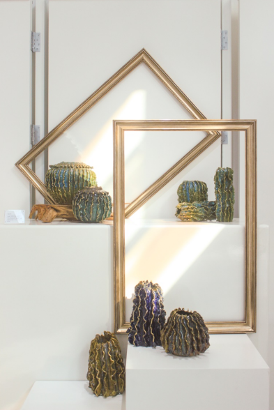 陶艺作品《瀚海未名者》的造型灵感来源于仙人掌,采用纯手工捏制,基于仙人掌的生长特性,传达出即使扎根在艰苦环境中,仍然克服困难,迎难而上的精神理念。曾该作品获得省级高校艺术设计展一等奖。
