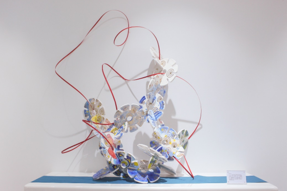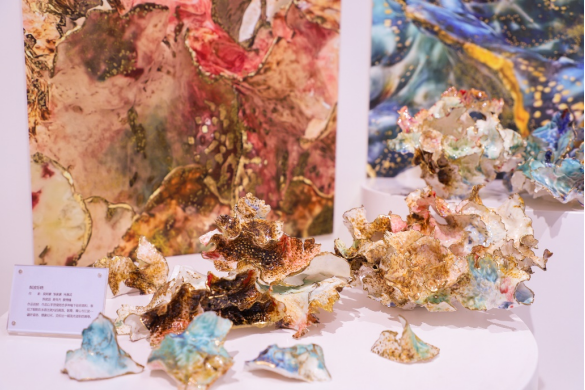 陶艺展区的作品由公司东瓦陶艺工作坊师生共同创作完成,该工作坊获得了集美区创业基金的扶持。创作出包括《时光河》《粼波烁晓》《瀚海未名者》等优秀陶艺作品。其中陶艺作品《时光河》隐喻30年来华厦学子各有不同的精彩,但却在华厦相遇,共绘青春回忆,通过精美的陶艺作品表达对华厦公司30周年校庆的祝福。